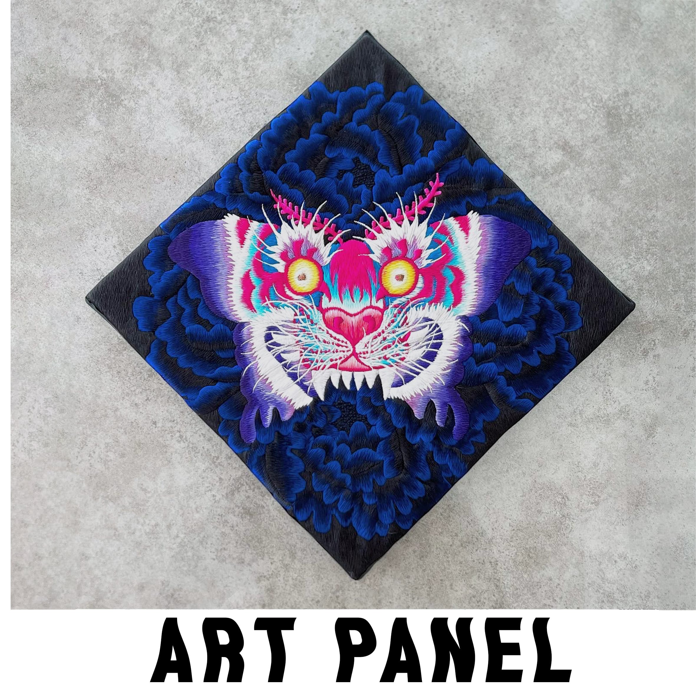 オーロラカラータイガーヘッド刺繍Tシャツ9.1オンスビックシルエット(ブルー/ブラック)