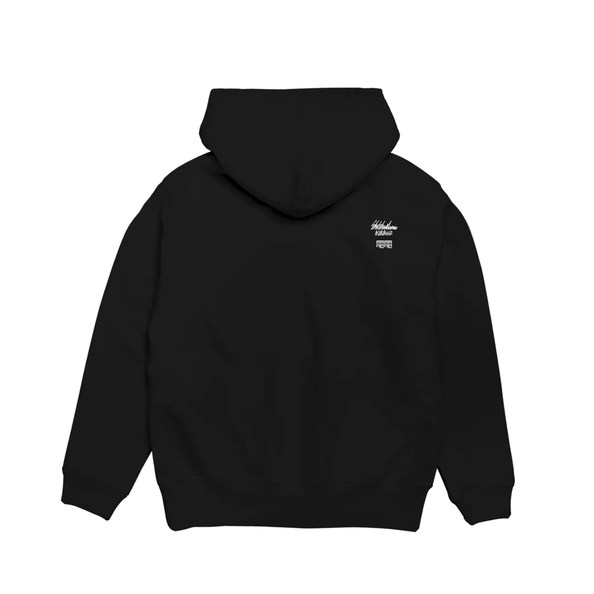 左胸にミニ蛾虎刺繍、右袖にSHISHUMANIAロゴ刺繍、背中にSHISHUMANIA刺繍麻似合ロゴと電電ロゴが入っています。