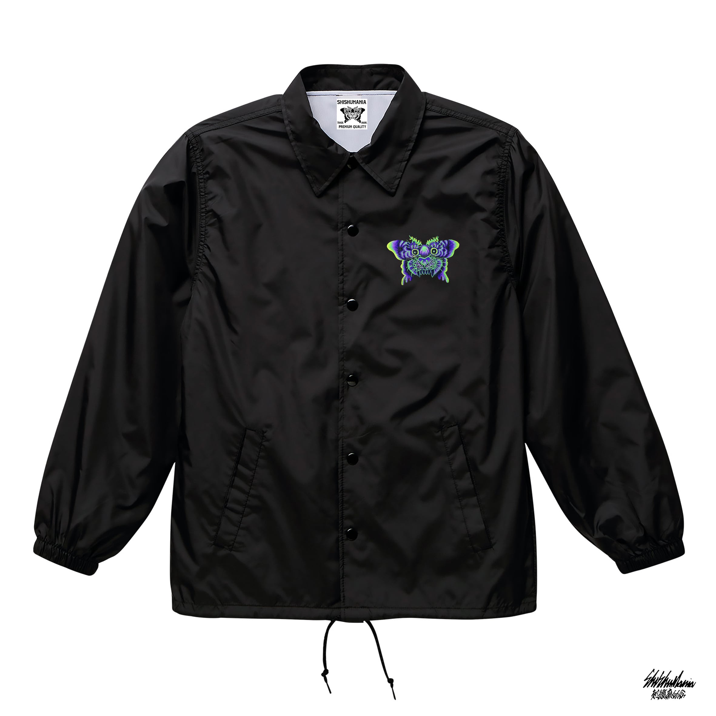 2023年、adidas×SHISHUMANIAコラボスーパースター用にデザインした「蛾虎」の刺繍を施したコーチジャケットです。