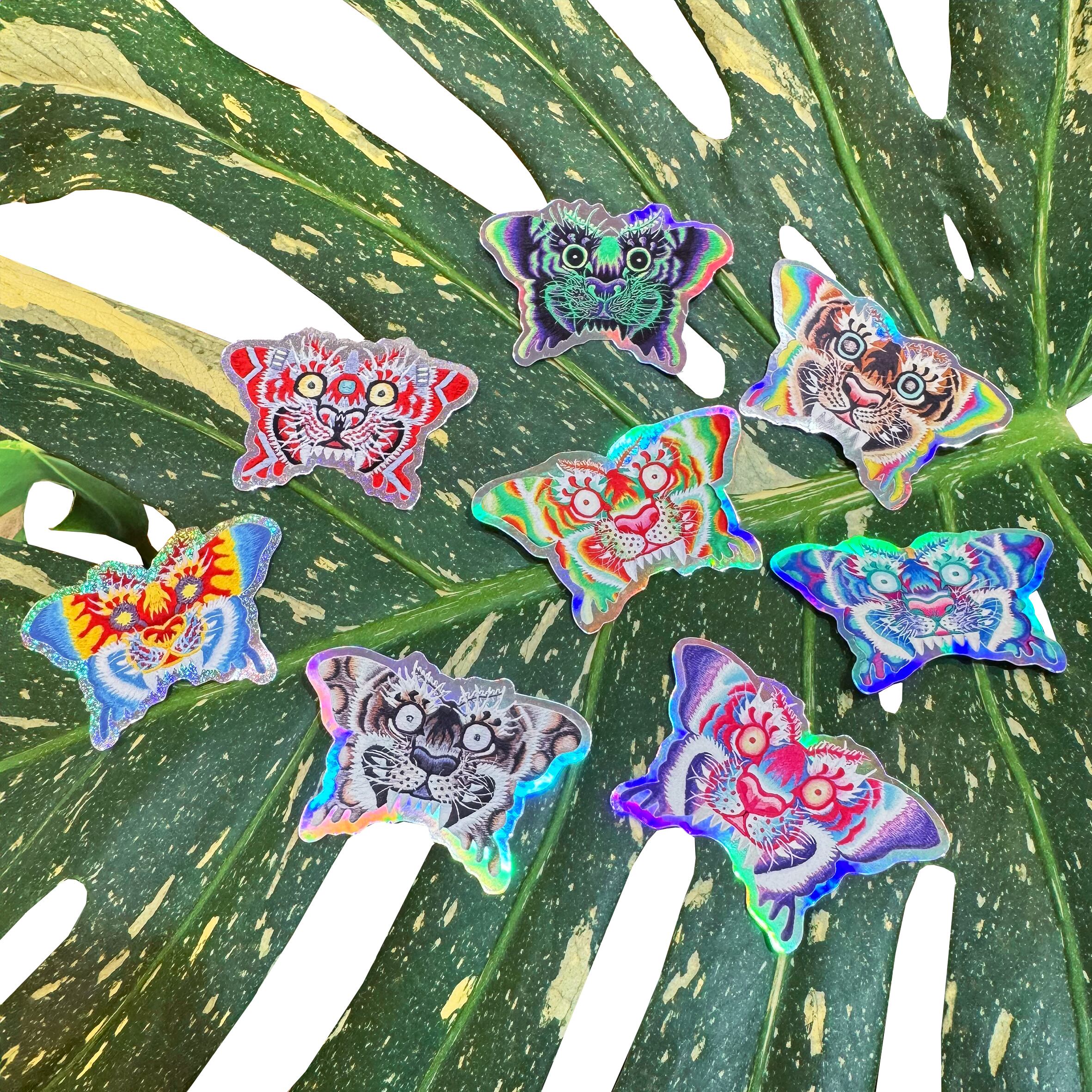 横振りミシンで刺繍した作品「蛾虎」を、どこにでも手軽に貼れるようにステッカー化しました。