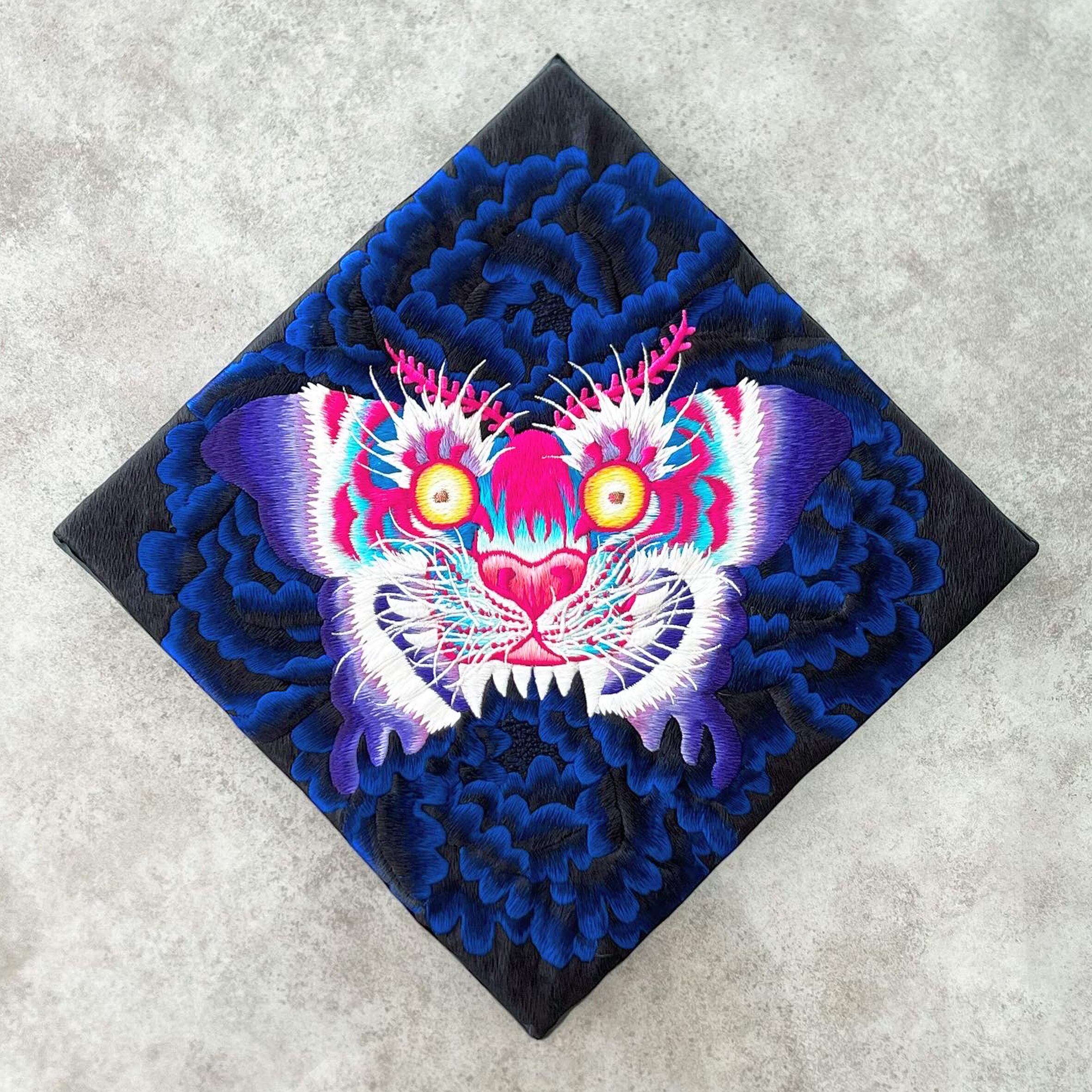 一人だけ熱心に見てくださるお客様がいらっしゃったので、どうせ帰るのなら新作の「蛾虎」を刺繍して帰ろうと思い、3時間かけて目の前で蛾虎を刺繍しました。